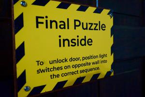 Once the steady-hand and switch challenges are complete, the final puzzle of the treasure hunt is revealed from behind a locked door.