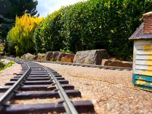 A battery model train controller and sound generator for a G-Gauge model railway, triggered by magnets embedded in the track.