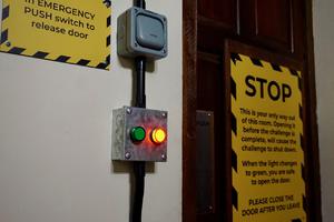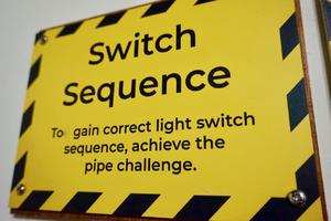 Once the steady-hand and switch challenges are complete, the final puzzle of the treasure hunt is revealed from behind a locked door.