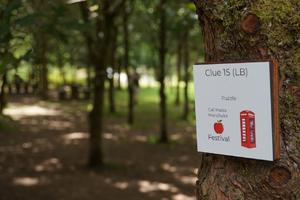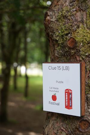 One of the telephone clues in use. Participants can dial numbers to listen to audio treasure hunt clues or view written text clues.