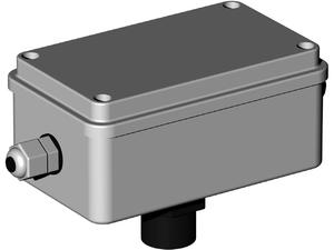 Water-poof control box, to be mounted in a wagon. Magnetic sensor seen underneath.